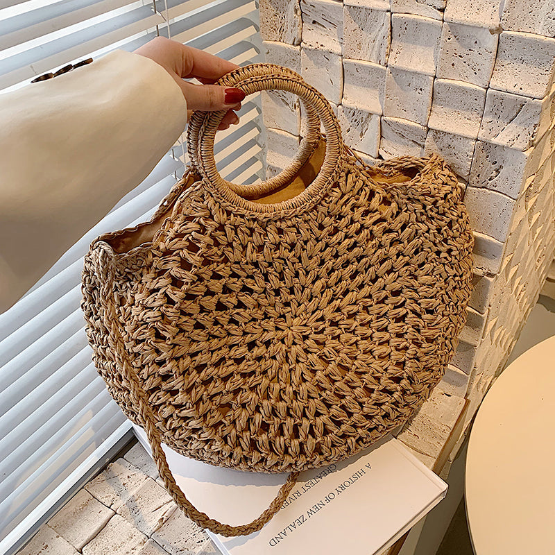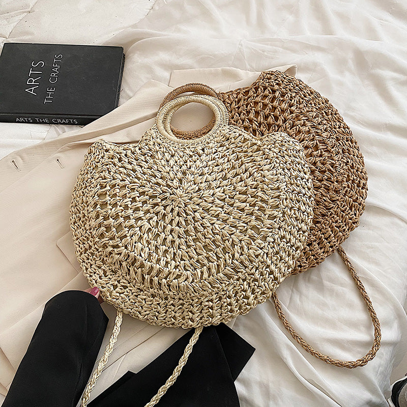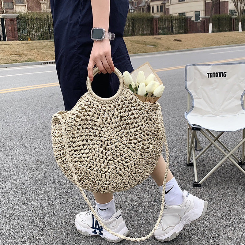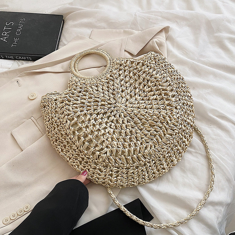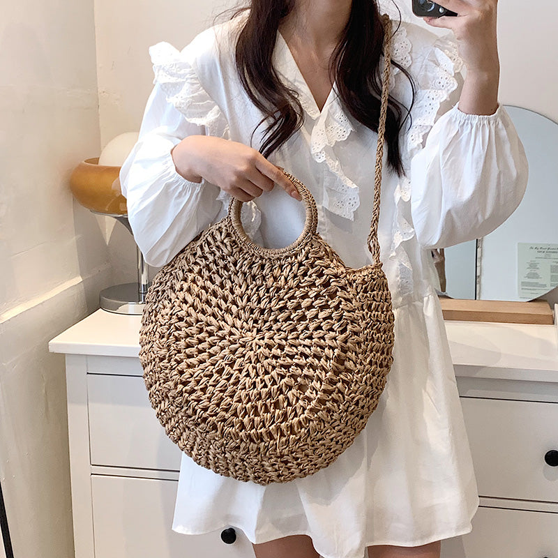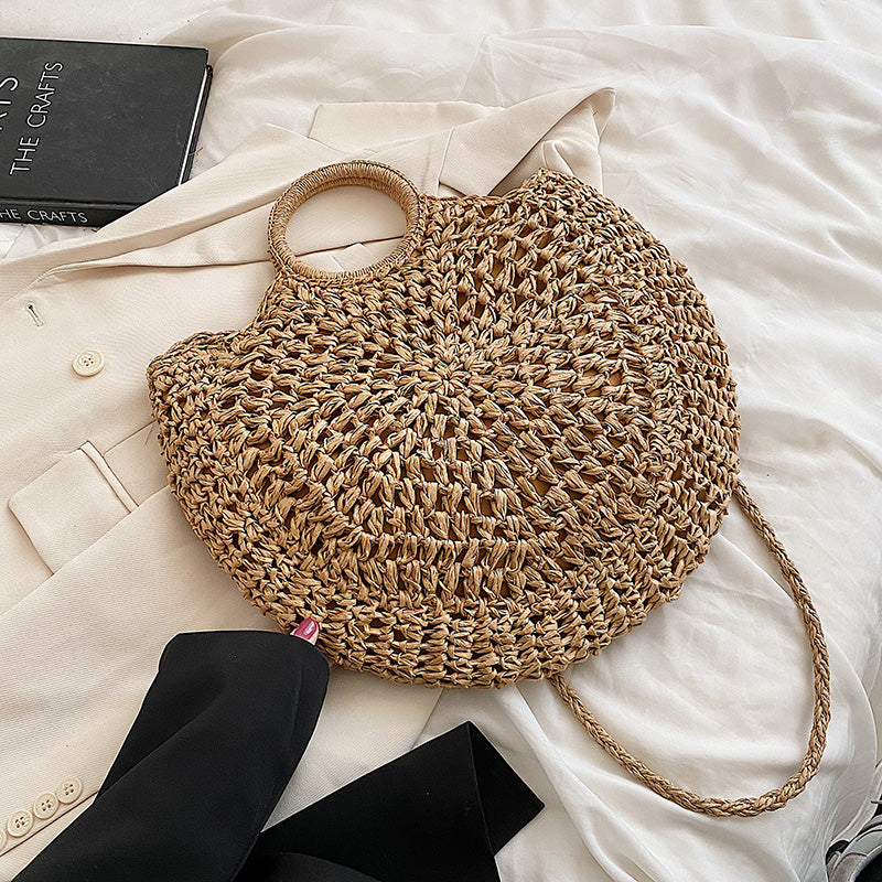 Straw Beach Shoulder Circle Rattan Bags Woven Totes