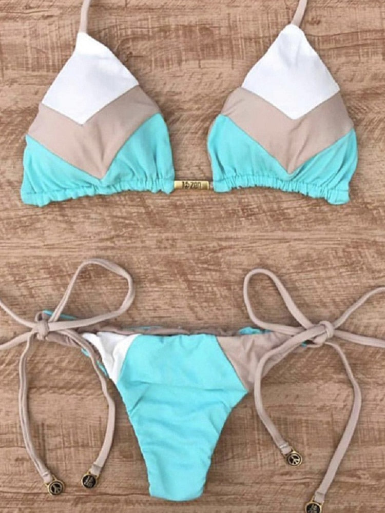 Multicolor Swimsuit Push Up Ribbed Bikini Set