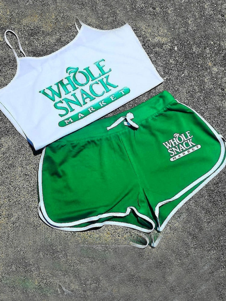 Two Piece Short Cami Top Short Pants Casual Printed Tracksuit