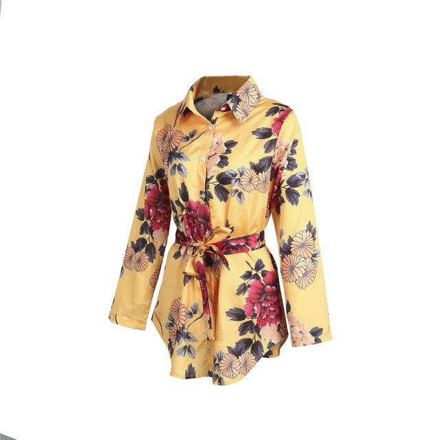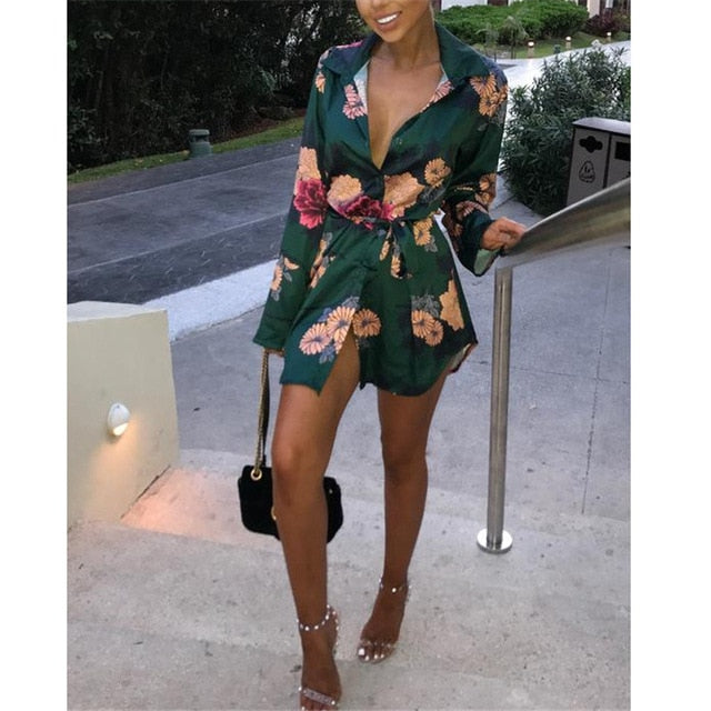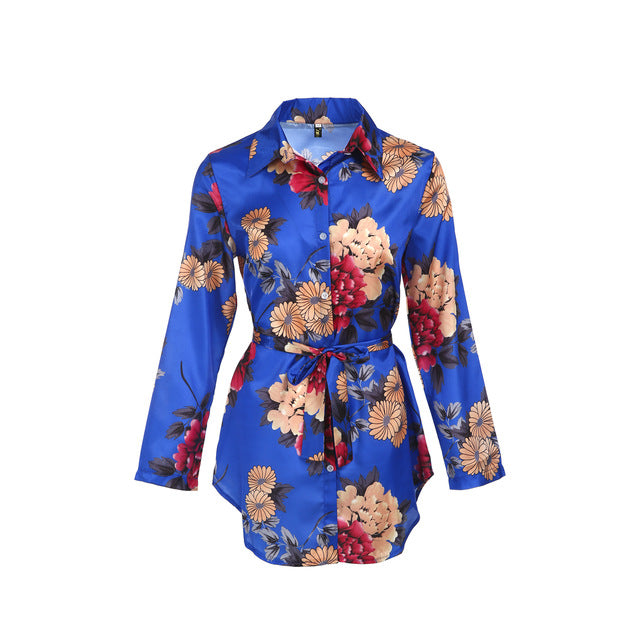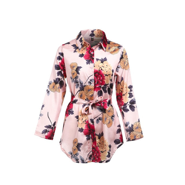 Shirt Dress Ladies Print Floral Long Sleeve Loose Short