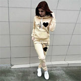 Heart print Set Two Piece Suits Hooded